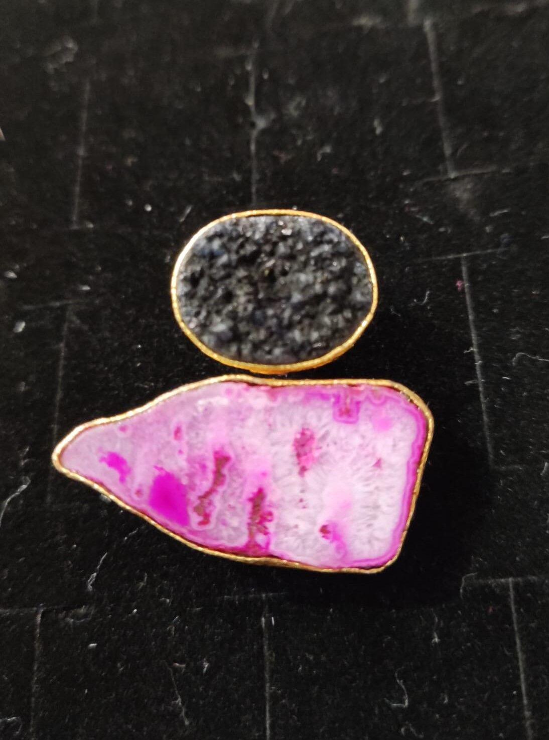 Anillo ajustable de laton bañado en oro de 18k con piedra semi-preciosa.